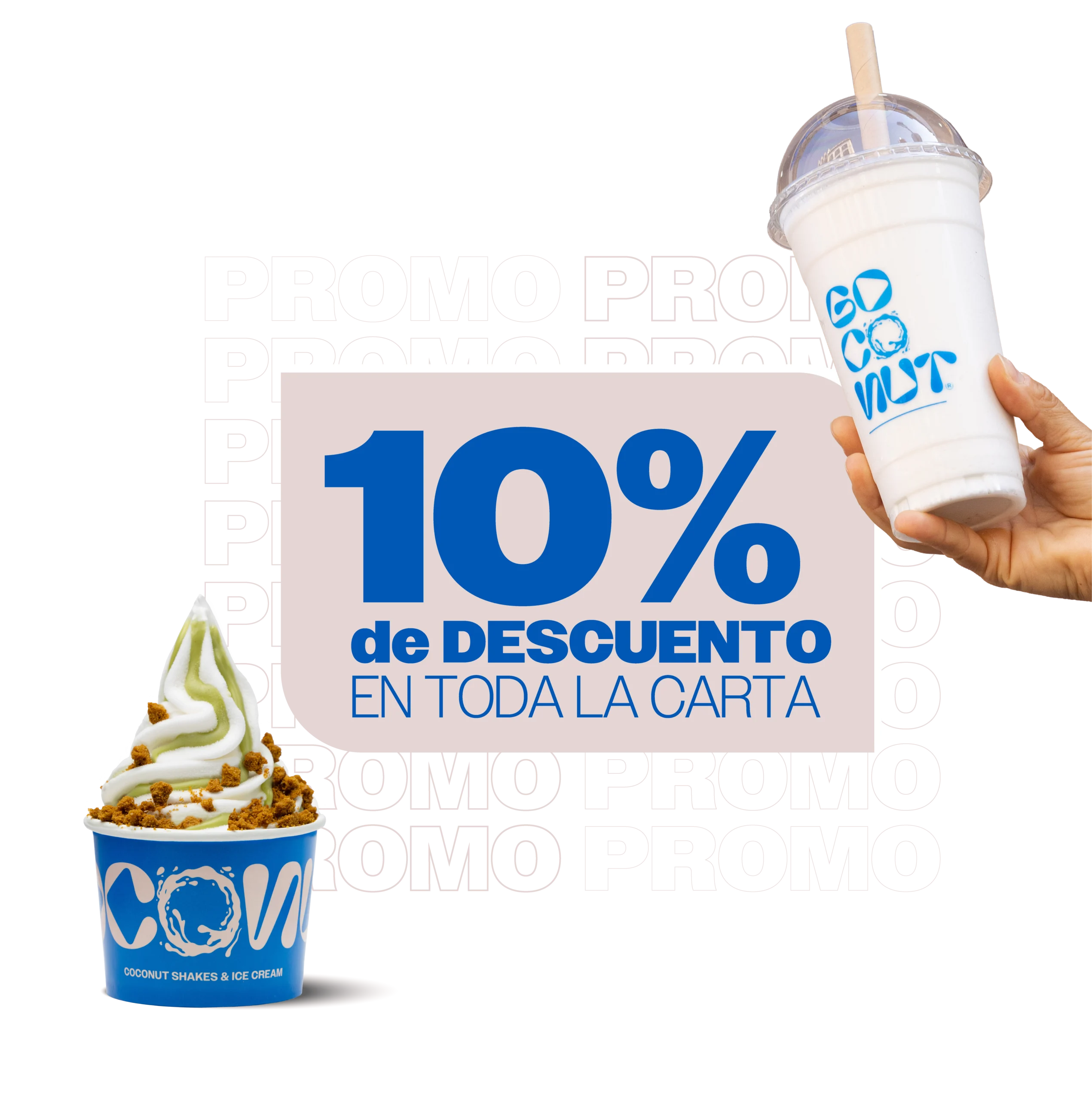 Promoción válida hasta el 31 de enero de 2026 en el local de GOCONUT ubicado en el Centro Comercial Alcalá Magna. 10% de descuento en toda la carta. No acumulable con otras promociones o descuentos. Goconut se reserva el derecho de modificar o cancelar la promoción sin previo aviso. Presenta el QR en el mostrador o escanéalo en el Kiosco en el momento de la compra, para beneficiarte del descuento.